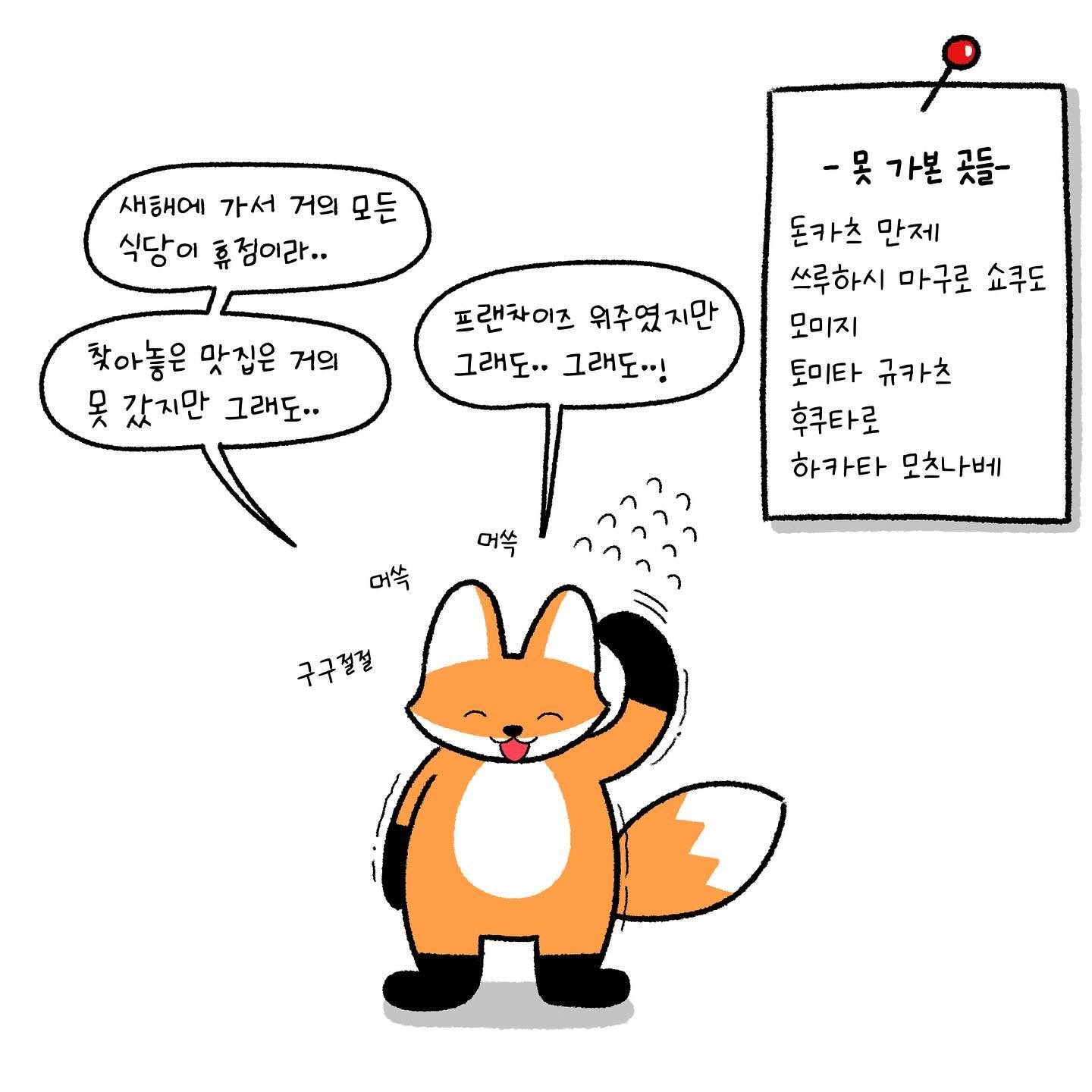 저희가 오사카 갔을 때는 새해.. 일본은 우리랑은 다르게 새해에 연휴가 길더라구요 그것도 모르고 새해에 간 저희는 가려고했던 거의 모든 식당을 실패했어요🥲 싹 다 휴무였거든요🥲 거의 프랜차이즈만 간 셈이지만 오사카 여행 마무리 겸 그래도 올려봅니다🥲 일본 여행 갈 때 새해는 피하기!! 목요일부터는 다시 신혼 일상툰으로 돌아올게요!