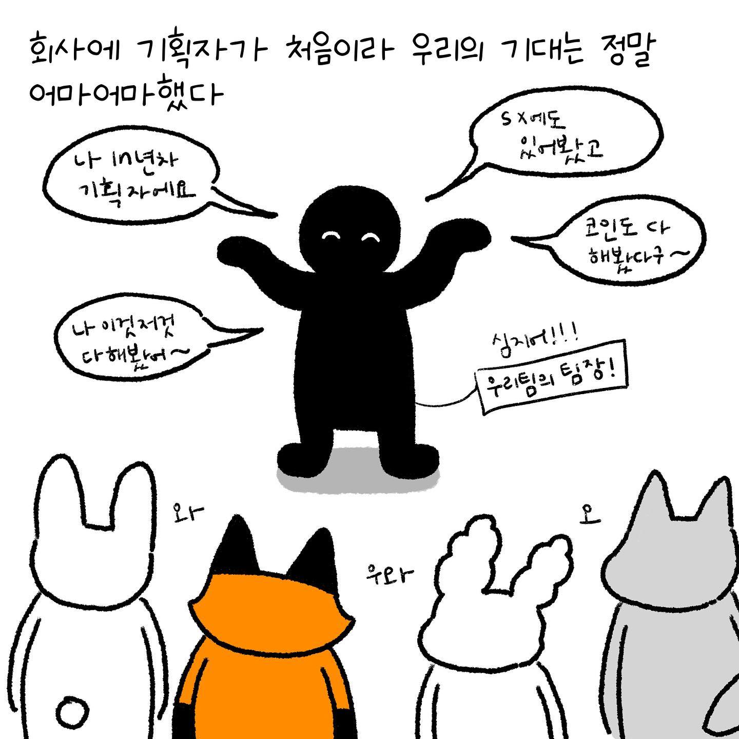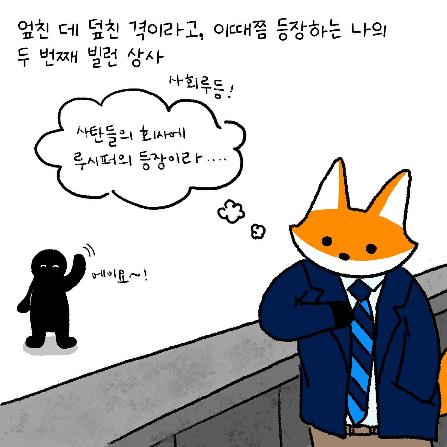 이때쯤 등장하는 인생 두 번째 빌런 상사! 사탄같은 회사가 있으면 루시퍼같은 상사가 와 줘야죠ㅎ 하지만 우리는 처음에는 그 상사를 존경했고 따랐고 정말 회사에 필요한 좋는 인재인 줄 알았어요 우리가 너무 착했어요🥲 #회사 #회사툰